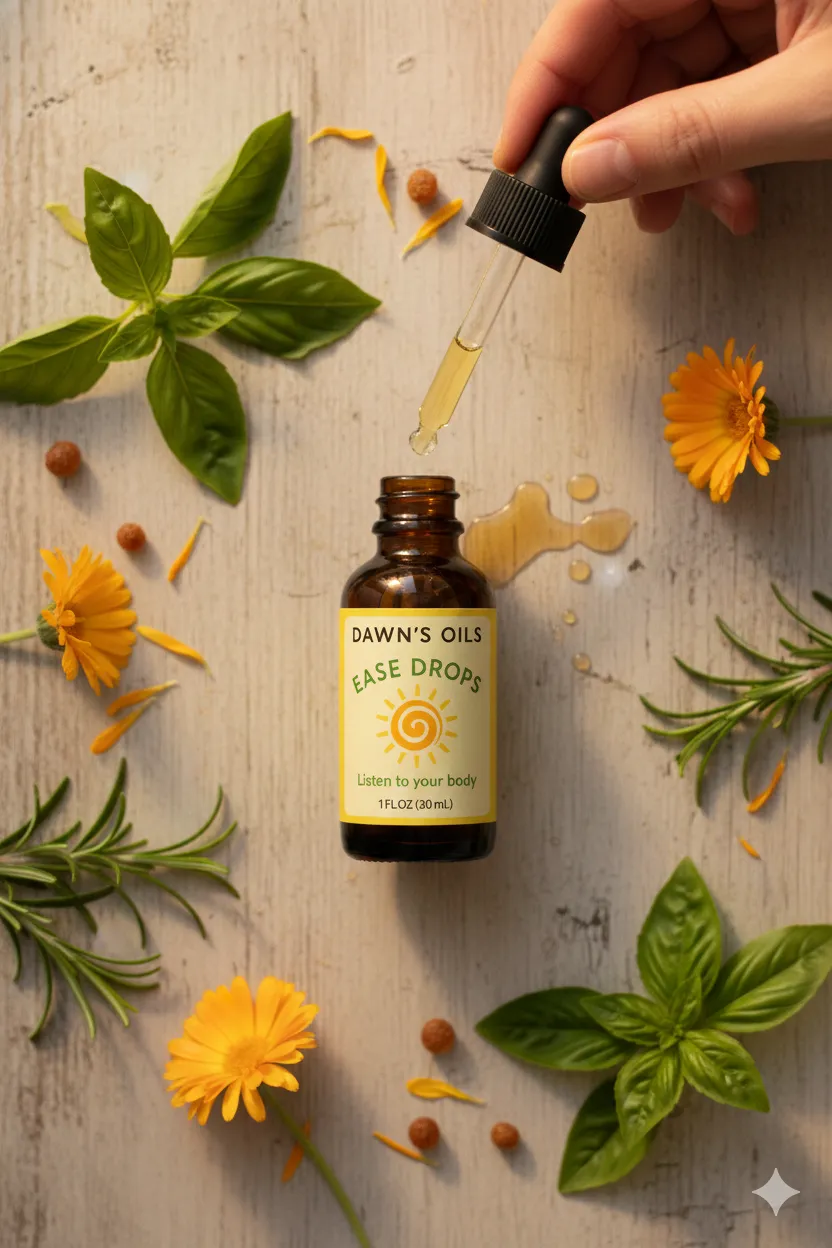 If you’re new, begin with The Turning Oil for face and body or Ease Drops for deeper relaxation. Both are designed to be simple, soothing introductions.